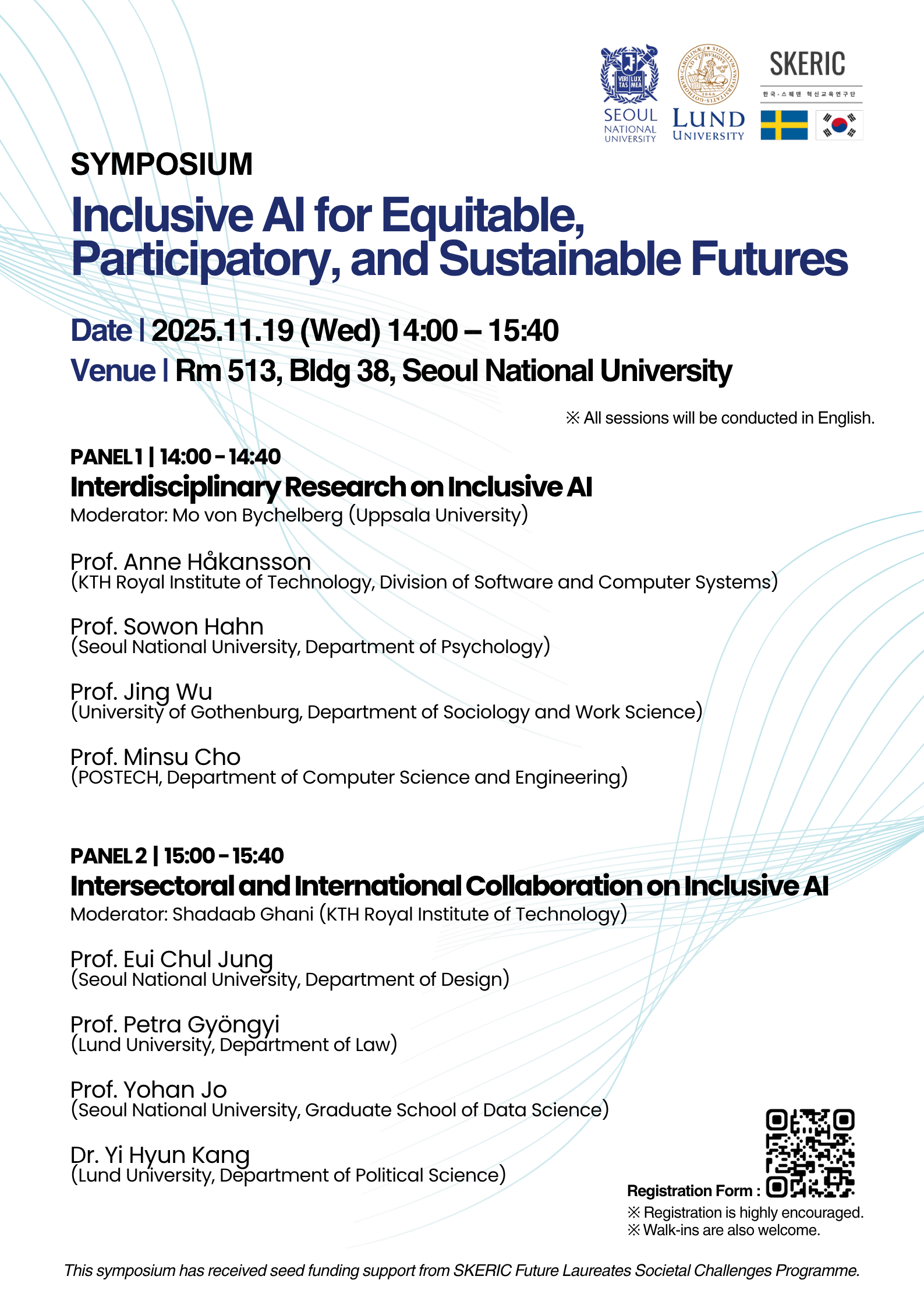 이 심포지엄은 학제간, 부문간, 국제적 관점을 통해 포용적 AI를 핵심 연구 분야로 발전시키기 위한 지식 공유 및 네트워킹의 장으로 마련되었습니다. 두 차례의 상호작용형 패널 세션에서 연사들은 학문 영역, 산업 부문, 문화적 맥락을 넘나드는 협업 경험을 바탕으로 도출한 통찰과 성찰을 공유하고자 합니다. 이 과정에서 발견한 기회와 도전 과제, 그리고 실천적 교훈들을 함께 나눌 예정입니다.