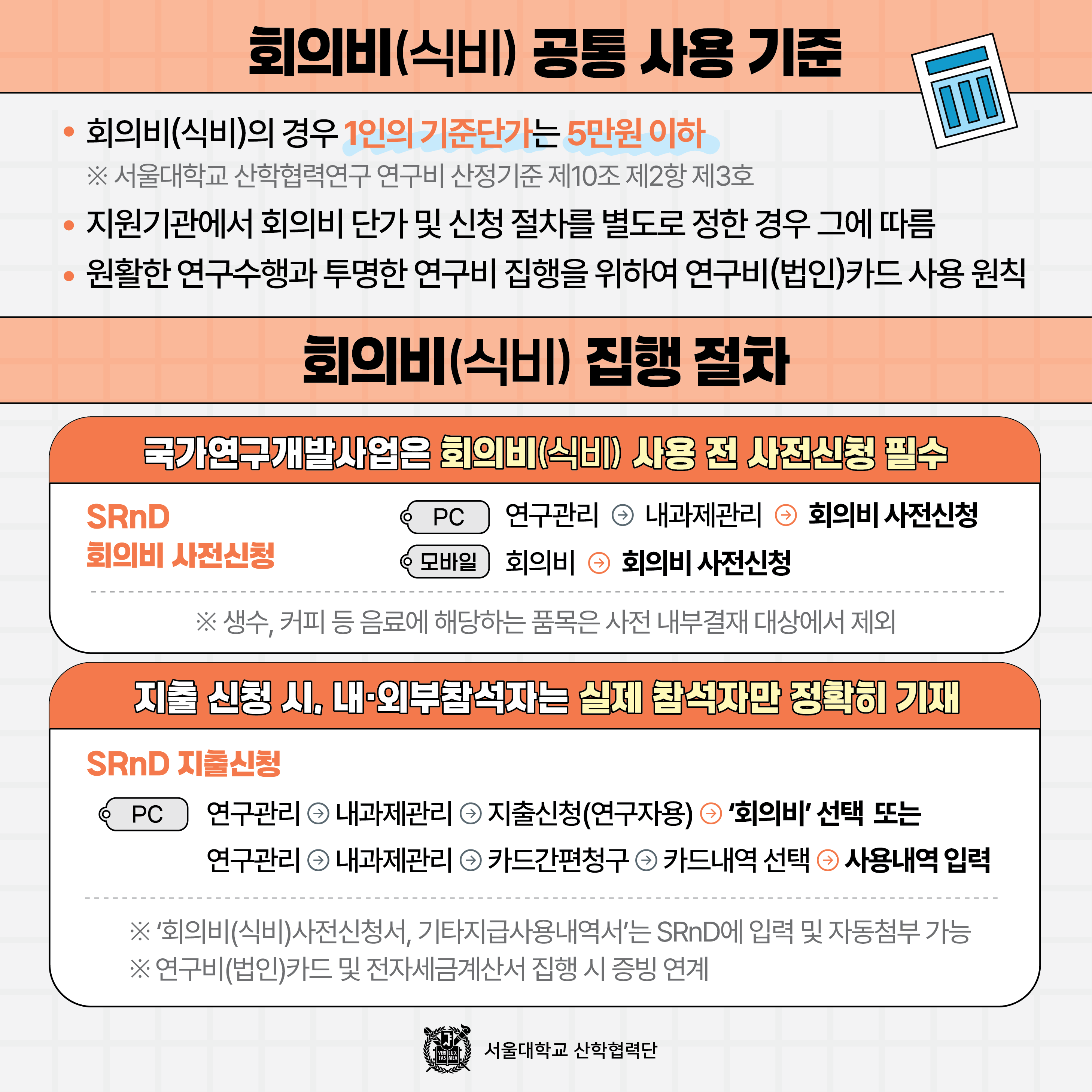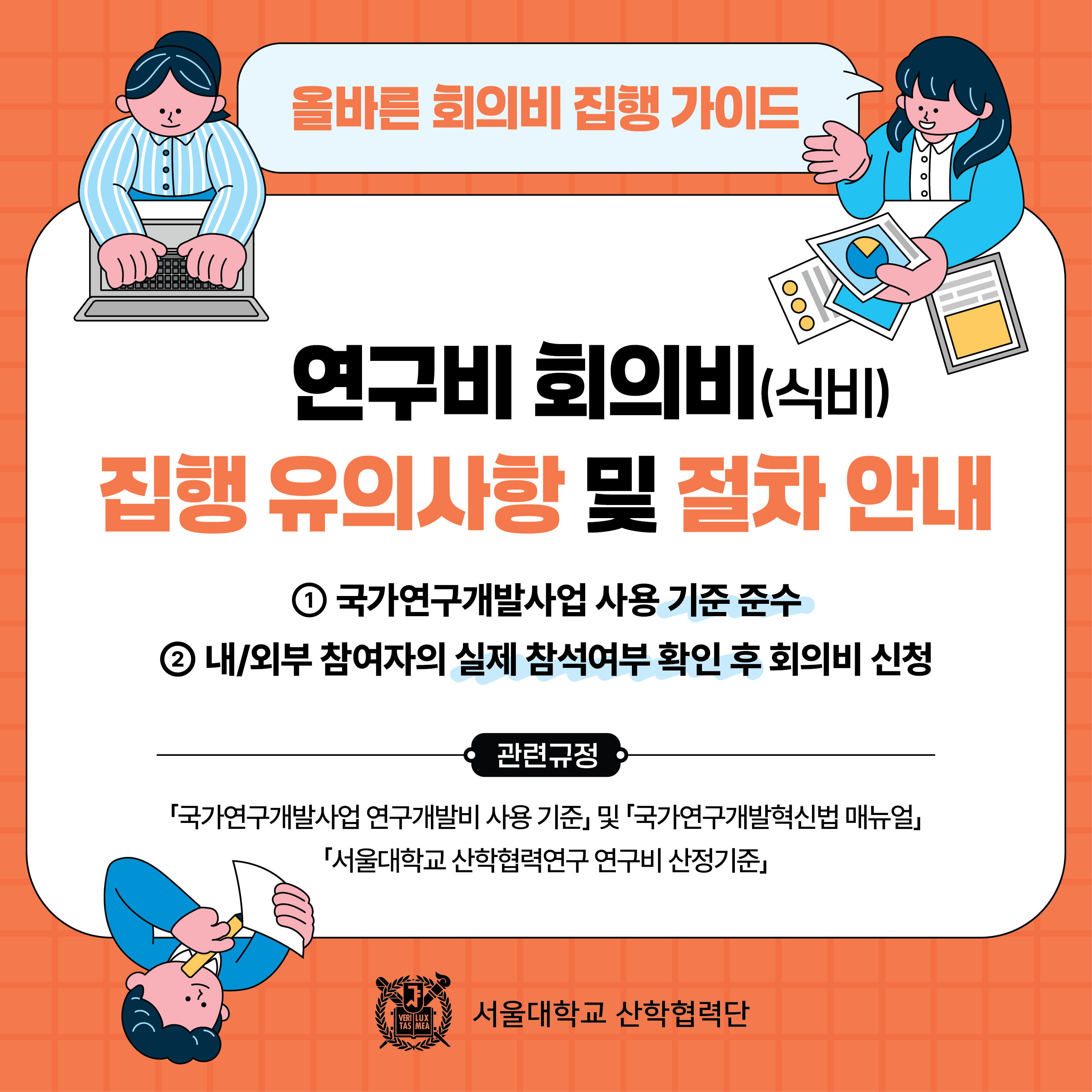 [카드뉴스 제39차] 연구비 회의비(식비) 집행 유의사항 및 절차 안내